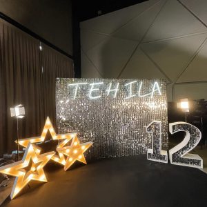 ֿעמדת צילום לבת מצווה עם אותיות נוצצות